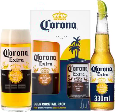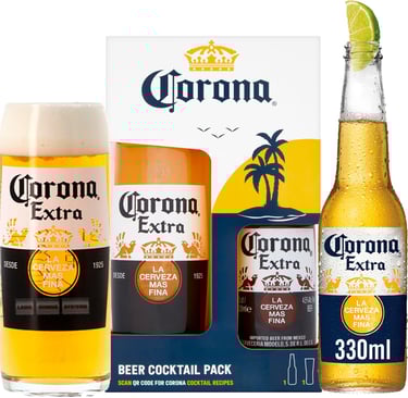 Corona Beer Gift Set - 330ml Bottle of Premium Corona Extra and Branded Glass (Case of 6)