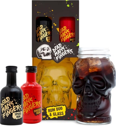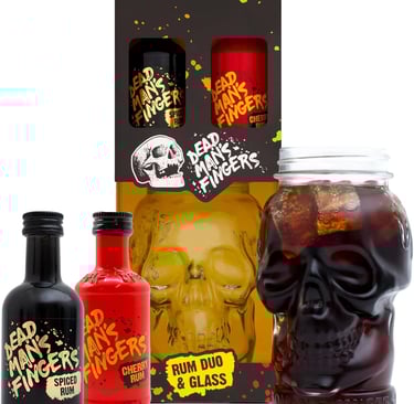 Dead Mans Fingers Rum Gift Set - Spiced Rum, Cherry Flavoured Rum, Mini Alcohol Bottles x2 5cl with Skull Glass