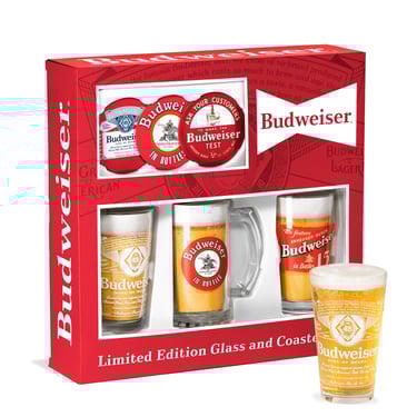 Budweiser Deluxe Glass and Coaster Collection Gift Set (Case of 6)