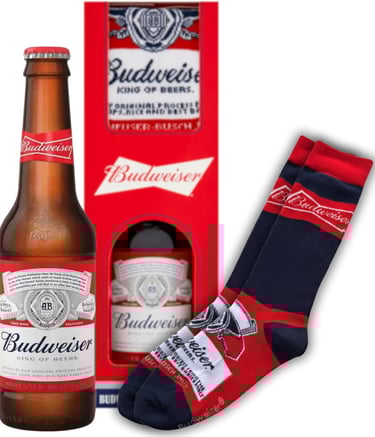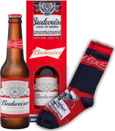 Budweiser Beer Gift Set - Official 300ml Bottle & Socks